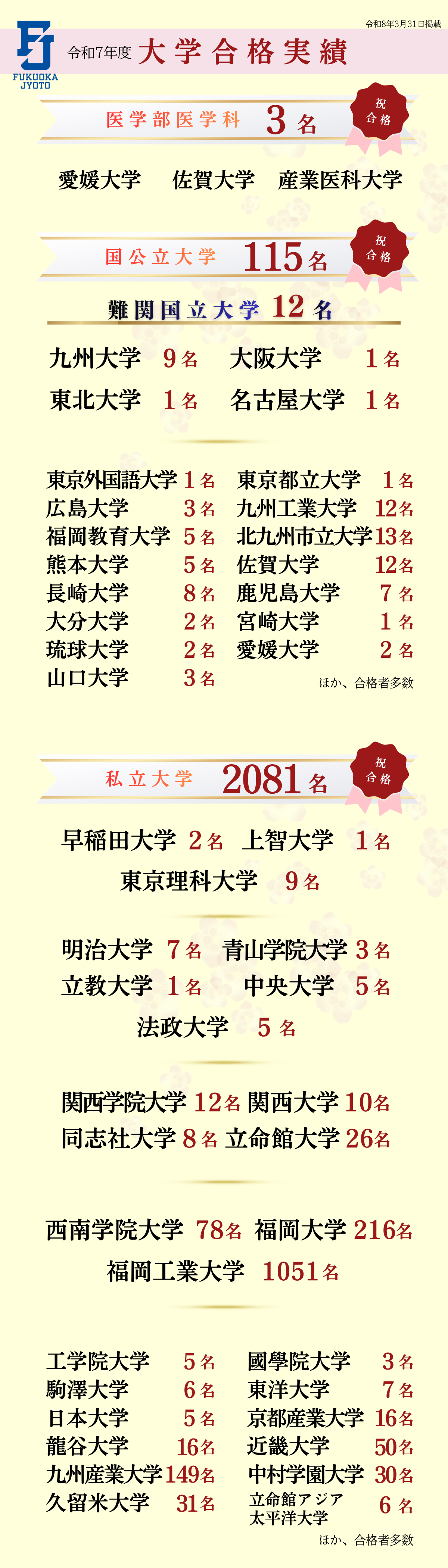 お知らせ 令和7年度合格速報 3/31(火)更新しました