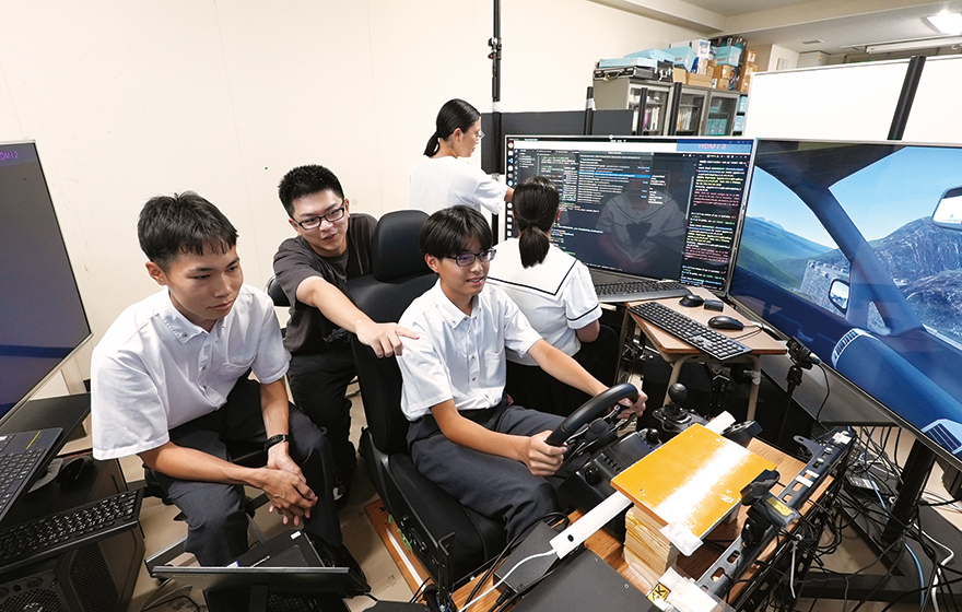 福岡工業大学独自の高大連携教育、i-STEAM。大学の最新施設を使い、城東高校の生徒は大学生による授業を受けます。高度な情報処理、最新機器を使った実験など、高校生と大学生の双方にとって、より深い学びになります。