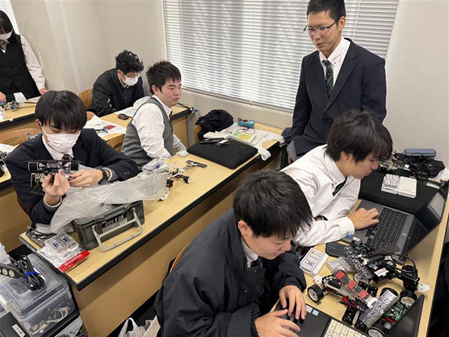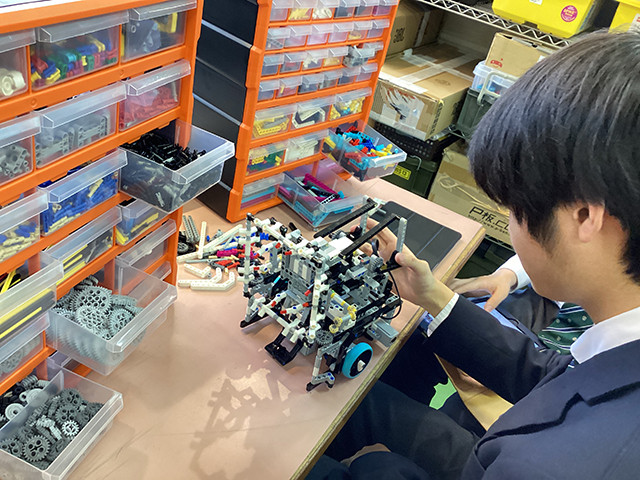 ロボットプログラミングチームでは、ロボットプログラミングは、LEGOマインドストームEV3やSPIKEプライムを使用し、WRO(World Robot Olympiad)やETロボコン、ロボットコンテスト、トマトロボット競技会に出場しています。今年度からは二足歩行ロボットの開発を行います。