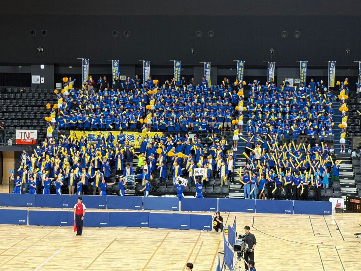 コートの選手たち、スタンドの大応援団で一丸となって、2年連続春高出場を目標に挑みましたが、女学院の勢いを止められず、惜しくも敗戦いたしました。