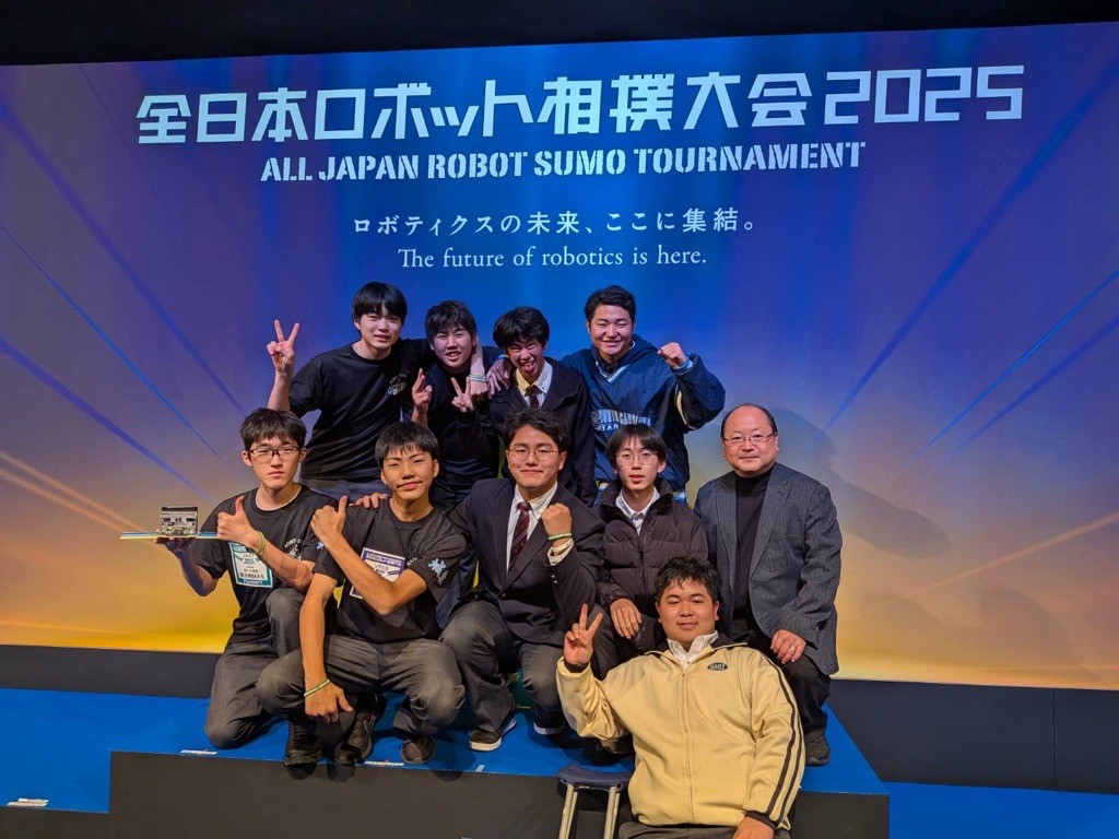 今回、僕は東京の両国国技館であった全日本ロボット相撲2025決勝大会に出場して、新競技500g級ラジコン型に出場し世界ベスト8を取ることができました。試合では、一瞬の判断や操作が勝敗を左右し、とても白熱した時間でした。勝ったときの達成感はもちろんですが、負けた相手の技術の高さに驚き、自分の課題も見つかりました。世界のレベルの高さを肌で感じられたことは、今回の大会で得られた大きな経験です。この経験を通して、ものづくりの楽しさや、あきらめずに挑戦する大切さを改めて感じました。これからももっと技術を磨いて、次はさらに上の成績を目指して頑張りたいです。支えてくれた家族や先輩、先生方には本当に感謝しています。これからも応援よろしくお願いします。