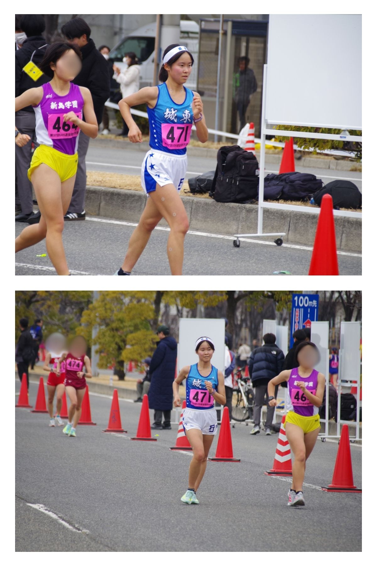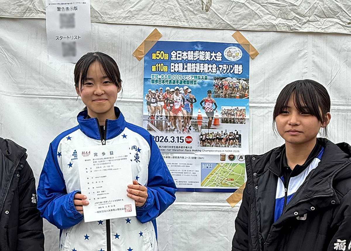 初めての全国大会、初めての10kmで、緊張しましたがサポートや応援のおかげで楽しんで歩くことができました。当日は、前半は割と余裕を持って歩けましたが、5kmを過ぎてから体力的にも精神的にもきつく、ペースが落ちてしまいました。その結果、目標のタイムにはあと少し届きませんでした。今後はインターハイ予選に向けてもっと体力をつけたり、気持ちを強くしたりしていきたいです。また、全国レベルの速い選手達の歩きを直接見て、沢山の事を学ぶことができたので、この学びをこれからの練習や試合に生かしていきたいです。応援ありがとうございました。